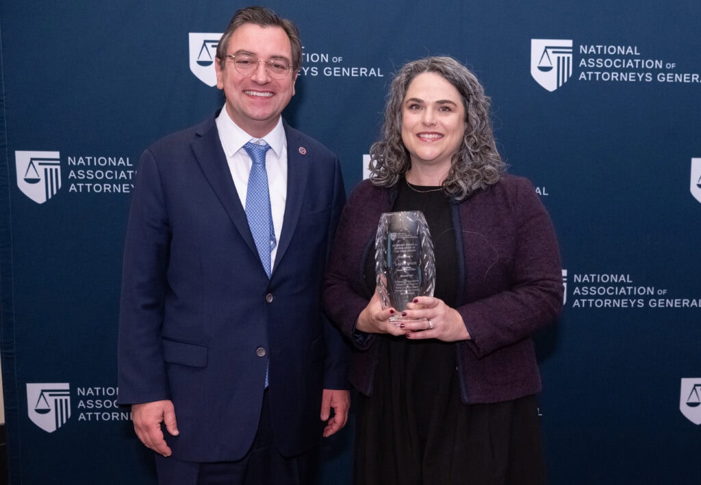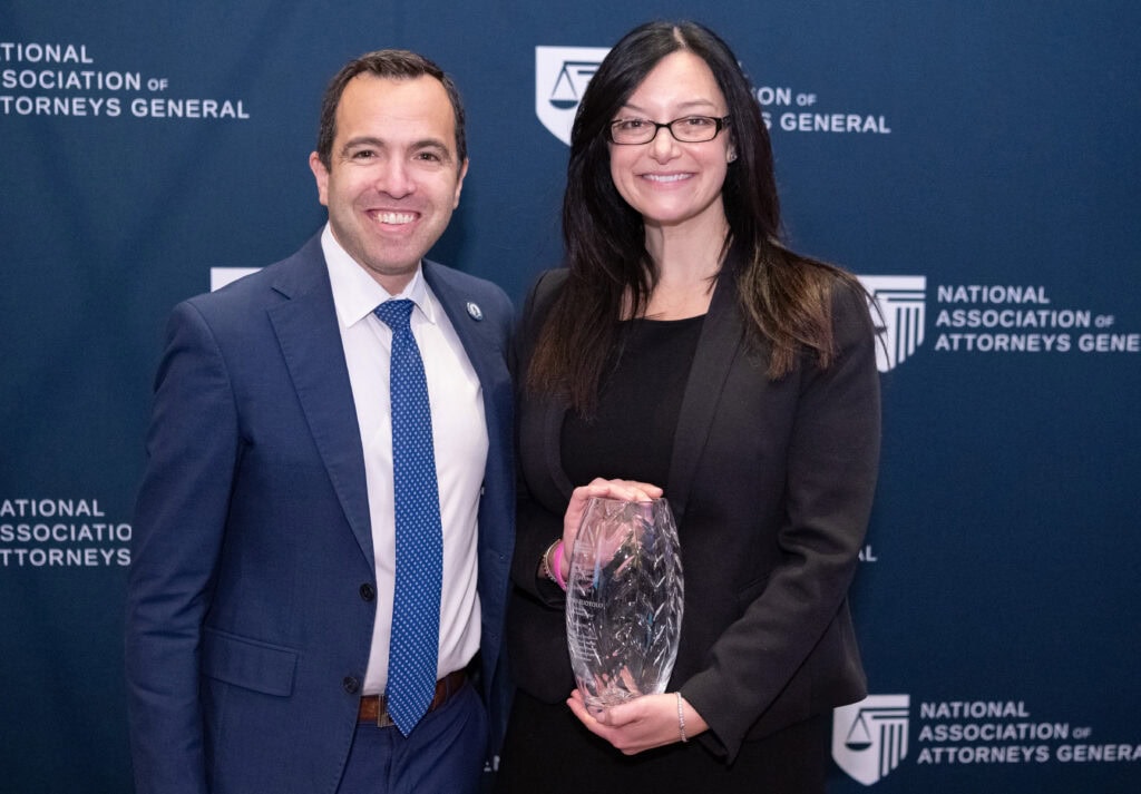 The Attorney General Senior Staff of the Year Award is given to a member of an attorney general's management staff who has distinguished himself or herself by providing exceptional service to NAAG and the nation's attorneys general through exemplary leadership, expertise, and achievement. This award should be given to a member of the management staff (chief deputy, chief of staff, division, or section chief, etc.) who meets the criteria set forth above. There is no minimum service time requirement.